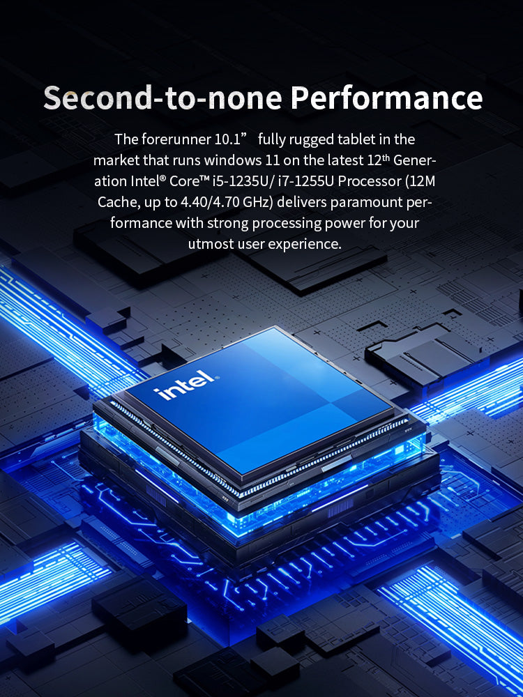 The M10A rugged tablet is designed to excel in demanding work environments, offering unmatched performance and versatility. Powered by the 12th Generation Intel® Core™ i5-1235U/i7-1255U processor and Windows 11 Pro, this 10.1-inch tablet is equipped to handle a variety of professional tasks with ease.