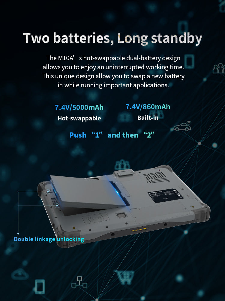 The M10A rugged tablet is your go-to solution for demanding work environments where performance, durability, and continuous operation are essential.