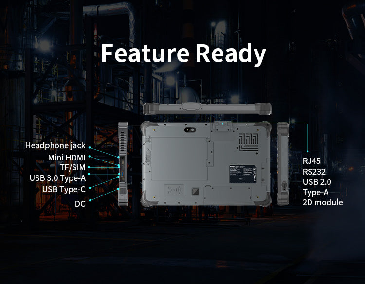 - Comprehensive Interfaces: Full set of interfaces including full-featured Type-C, USB 3.1, Mini HDMI 2.1a, RJ45, and a 12-pin pogo pin for docking charging, providing versatile connectivity options.