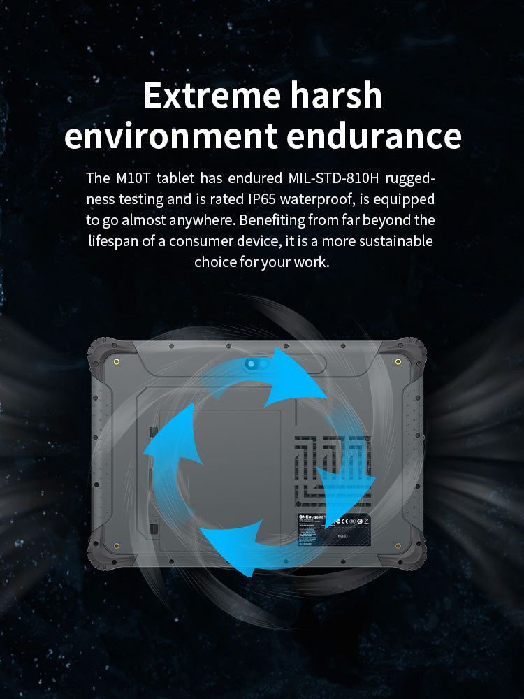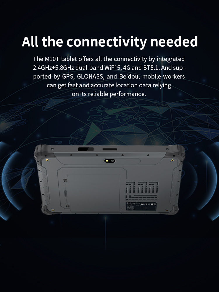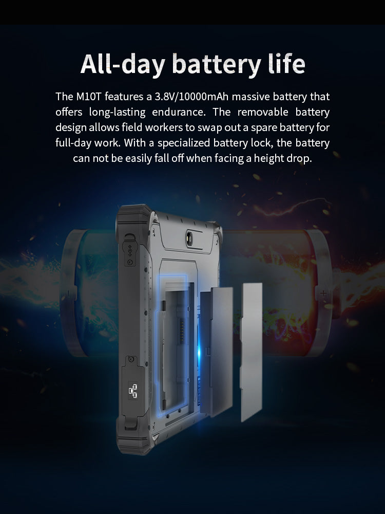 The M10T Rugged Android Tablet has undergone MIL-STD-810H testing, meaning it can maintain performance under extreme temperatures, vibration, and drops. Additionally, its IP65 protection rating ensures that the device can withstand dust and water splashes.