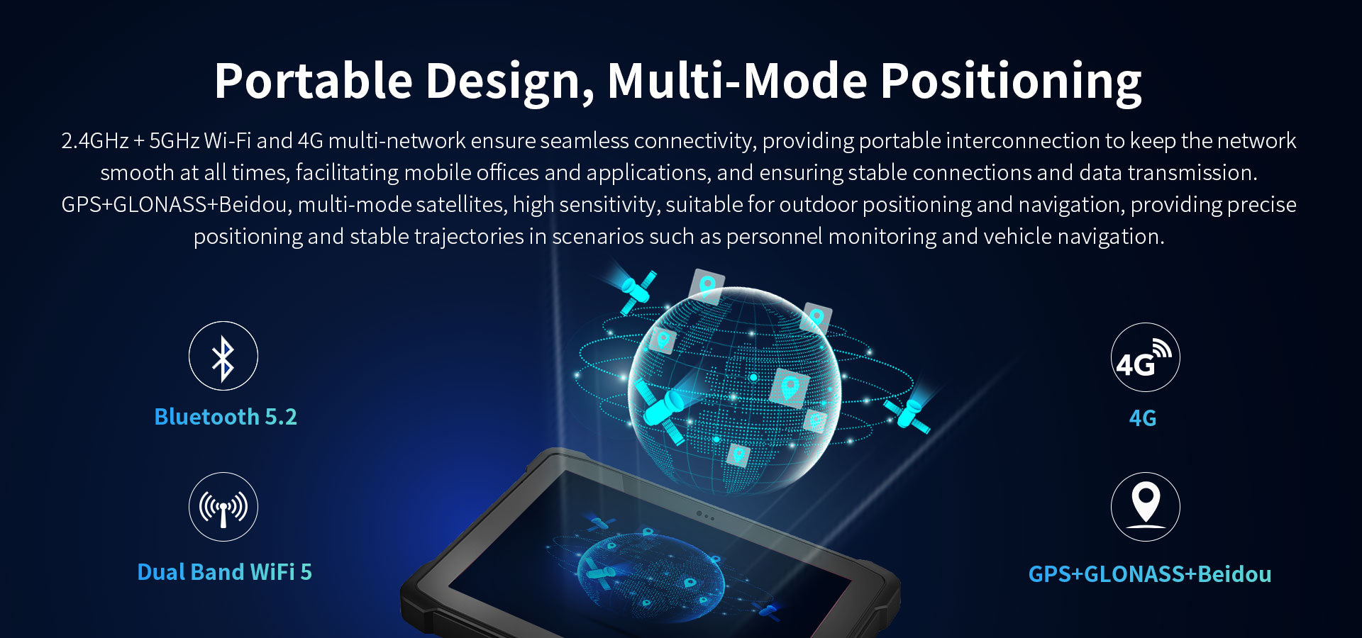 - [ Mission Critical Connectivity ] - Supporting 2.4G+5.8G dual-band WiFi for hassle-free indoor network access, 1 Nano SIM Card + 1 SD Card or dual Nano SIM Cards slots for 4G LTE network, compatible with major providers like Verizon, AT&T, and T-Mobile. Plus, with Bluetooth 5.2, experiencing faster file transfer with a range of up to 33 feet. It also comes with practical tools such as GPS, NFC, Gravity Sensor and more, providing you with convenient access to navigation & positioning and data services wherever you go