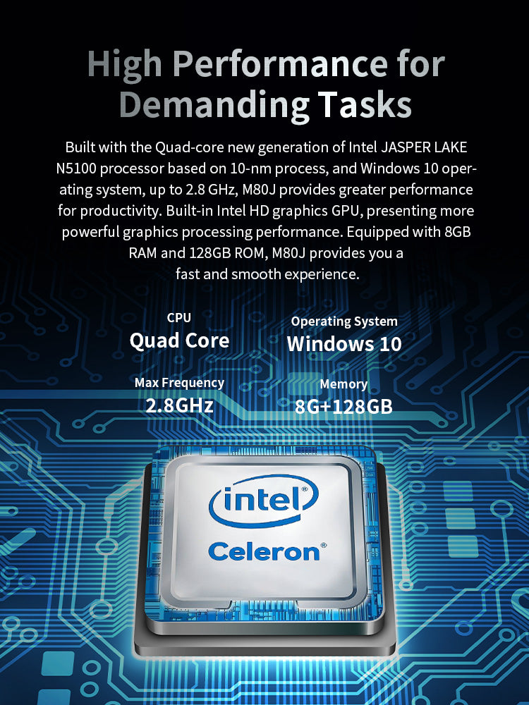 Powered by the 2.8GHz quad-core Intel JASPER Lake N5100 processor and Windows 11 Pro operating system, the M80J delivers exceptional performance for handling complex industrial applications. With 8GB RAM and 128GB internal storage, plus support for up to 512GB TF card expansion, you'll have plenty of space for storing files, videos, and running large software programs.