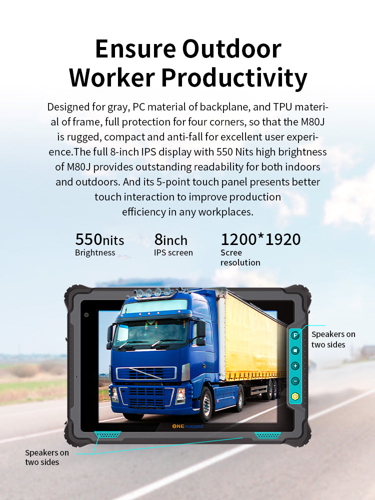 Designed with a durable PC backplate and TPU frame, the M80J rugged tablet is built to withstand harsh industrial environments. The tablet offers full protection for all four corners, ensuring resistance to impacts and drops in demanding work settings.