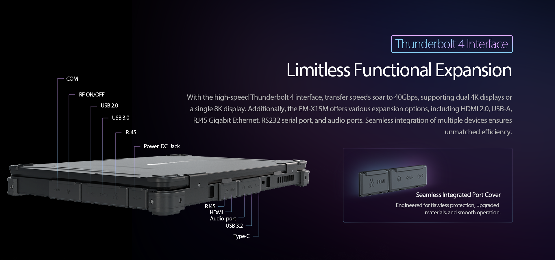 Rich I/O: USB 3.2, HDMI, RS232, RJ45, Thunderbolt 4 – Seamless integration with all peripherals